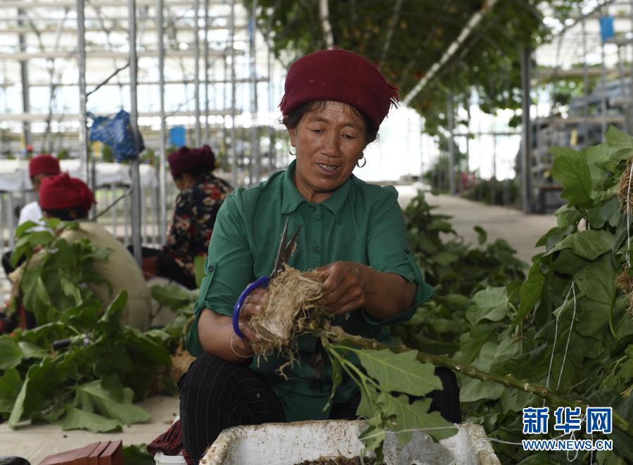 8月10日,四川省涼山彝族自治州昭覺縣四開鄉(xiāng)好谷村的阿爾衣呷在家附近的涪昭現(xiàn)代農(nóng)業(yè)產(chǎn)業(yè)園內(nèi)務(wù)工。新華社記者 劉坤 攝