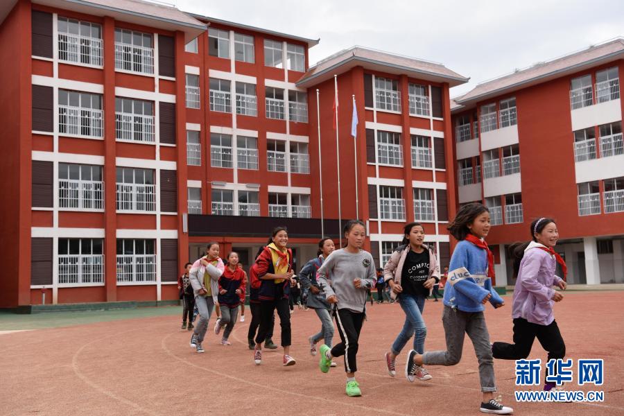 四川省布拖縣阿布澤魯小學(xué)的學(xué)生們在新操場上跑步(6月22日攝)。新華社記者 胥冰潔 攝