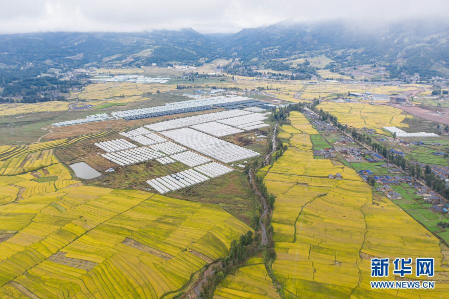 昭覺縣阿并洛古鄉(xiāng)的美麗田園和農(nóng)業(yè)產(chǎn)業(yè)園(10月13日攝,無人機照片)。新華社記者 江宏景 攝
