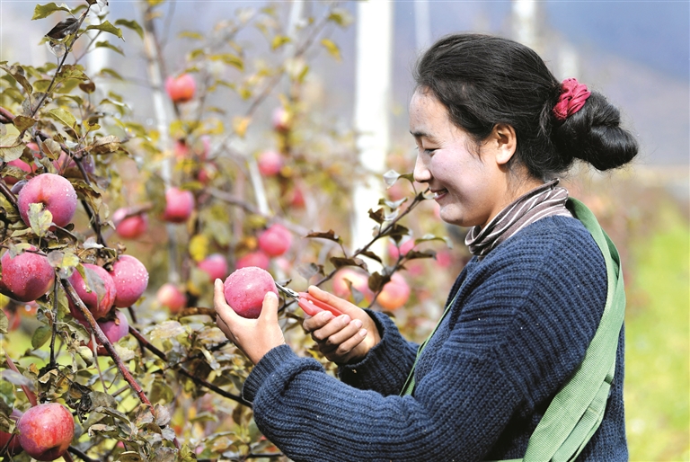 日前,西藏林芝市晚熟蘋果喜獲豐收,當(dāng)?shù)剞r(nóng)牧民在果園忙著采摘蘋果。據(jù)悉,西藏林芝市栽種蘋果約3.78萬畝,預(yù)計(jì)全年產(chǎn)量可達(dá)1.5萬噸,產(chǎn)值1.7億元。林芝市素有“西藏江南”之稱,是西藏重要的水果生產(chǎn)基地。近年來,林芝市立足高原生態(tài)氣候特點(diǎn),開展蘋果“新品種、新技術(shù)、新模式、新農(nóng)藝”研發(fā)和應(yīng)用推廣,果實(shí)品質(zhì)不斷改良。
