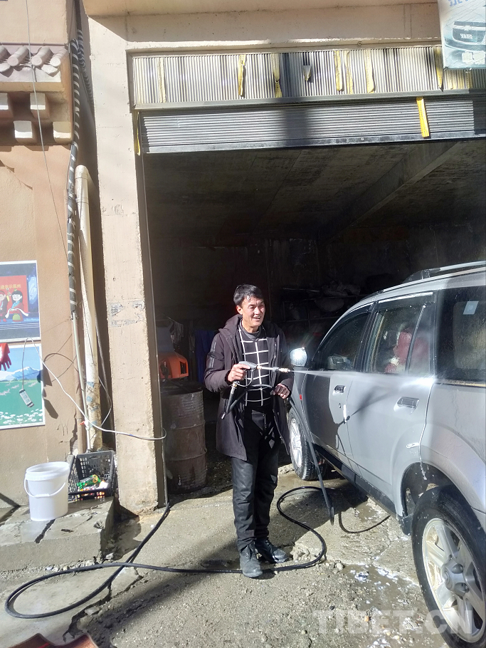 中國(guó)西藏網(wǎng)訊 高壓水槍洗車、擦車、整理車內(nèi)衛(wèi)生……2021年1月1日,四川省甘孜藏族自治州理塘縣濯桑鄉(xiāng)易久村搬遷至縣城的原貧困戶降央多丁在自家的洗車店忙得不亦樂乎。