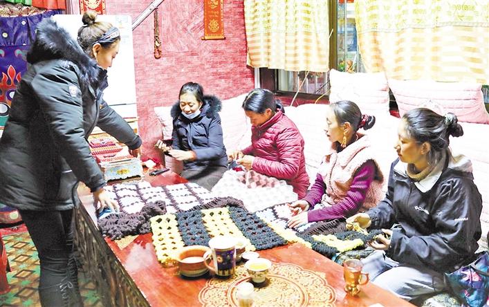 “圓夢新居”居委會經調查發(fā)現,部分婦女因為在家照看孩子,無收入來源。居委會第一書記和鄉(xiāng)村振興專干商量后,通過網上教學視頻,學習了手工毛線編織手藝,并手把手教婦女們編織簡易的毛毯和沙發(fā)坐墊。目前,“圓夢新居”十余名婦女學會了編織毛毯等手藝,將編織成品,依托居委會開辦的合作社商店或居委會工作人員跑單等方式進行銷售,努力實現有勞動能力的搬遷戶能在家門口增收致富。