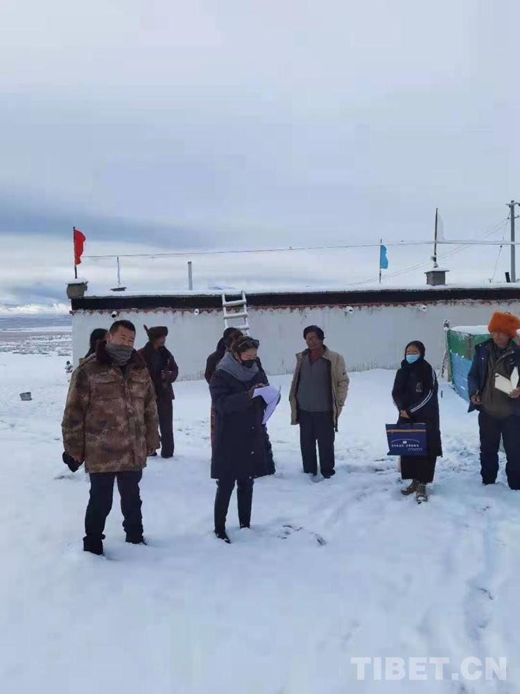 圖為米普和同事們頂風(fēng)冒雪開展統(tǒng)計(jì)工作