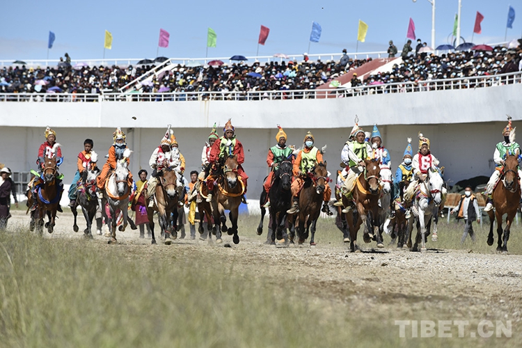 圖為那曲市2020羌塘恰青格薩爾賽馬藝術節(jié)場內速度賽馬比賽現場,少年們策馬而行(資料圖)