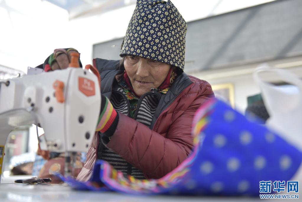 在民族服裝縫紉制造農民專業(yè)合作社里,拉卓正在縫制產(chǎn)品(2021年2月2日攝)。 新華社記者田金文 攝