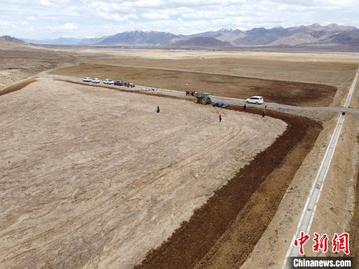 圖為拉洛四大灌區(qū)通水后,農(nóng)牧民在開墾的土地上春耕 水電基礎(chǔ)局 供圖