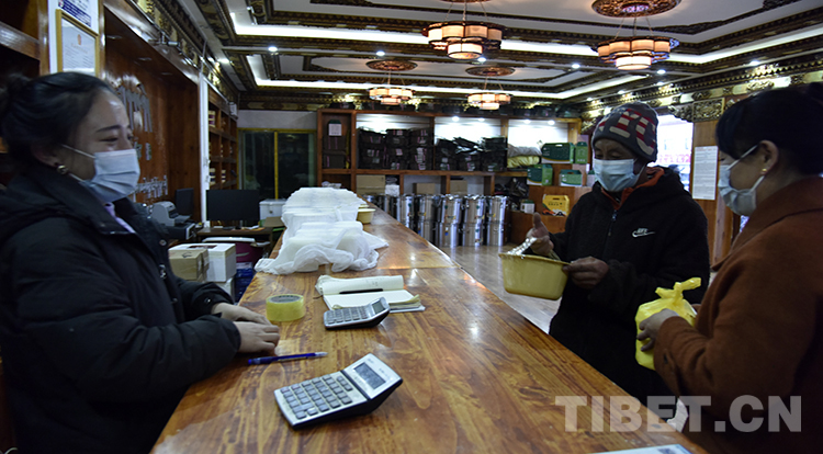 圖為嘎爾德色尼區(qū)銷售總店里的收奶員巴桑 攝影:王媛媛
