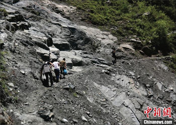 圖為農(nóng)行墨脫縣支行員工徒步進行流動金融服務?!∧摽h支行供圖