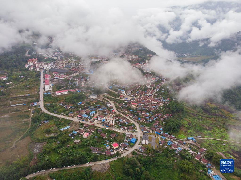 俯瞰墨脫縣城(2019年10月26日無(wú)人機(jī)拍攝)。新華社記者 孫非 攝