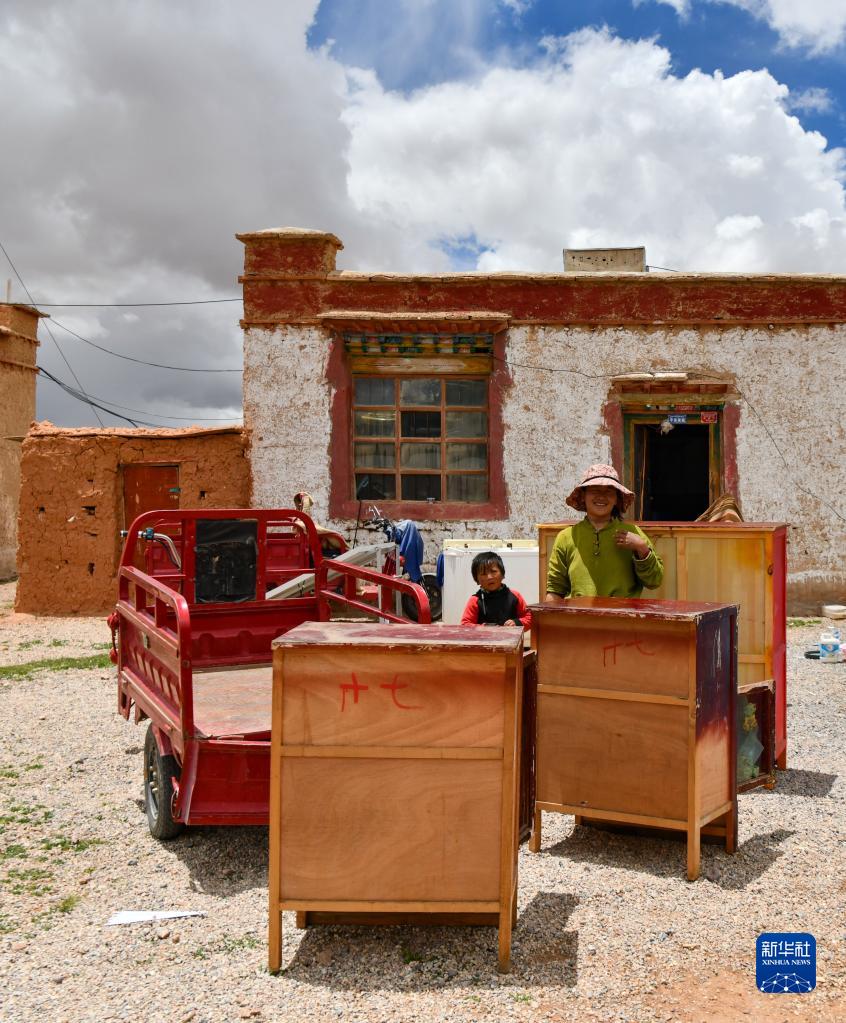雙湖縣多瑪鄉(xiāng)果根擦曲村村民在打包家具,準備搬遷(7月12日攝)。新華社記者 周荻瀟 攝