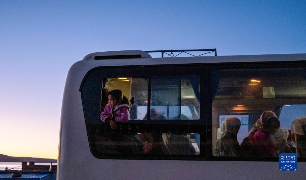 搬遷群眾搭乘大巴,準備前往森布日安置點(7月19日攝)。新華社記者 孫非 攝