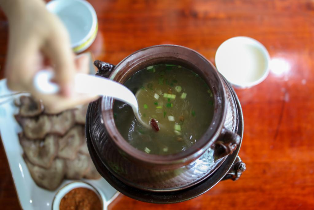 “陶器鍋里的湯不容易散味,也不容易涼?!甭迳R嫖髡f(shuō),他店里的所有陶器都是從塔巴村購(gòu)買。