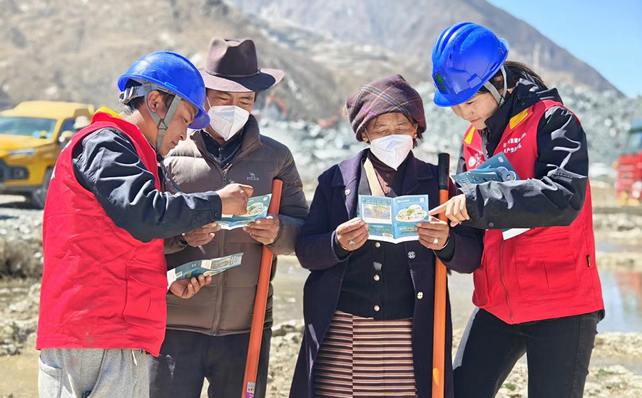 國網(wǎng)曲水縣供電公司共產(chǎn)黨員服務(wù)隊(duì)在拉薩市曲水縣茶巴拉鄉(xiāng)色麥村開展春耕春灌安全用電宣傳(4月7日攝)。國網(wǎng)西藏電力供圖 旦增央卓 攝