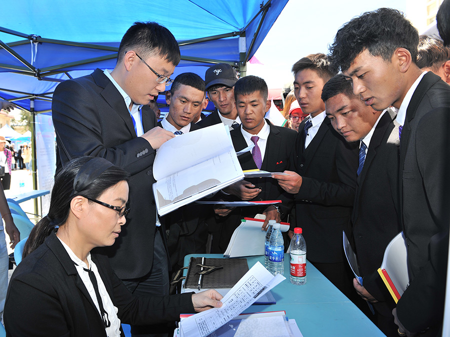 國網(wǎng)西藏電力有限公司人資部組織參加2018年中央企業(yè)區(qū)內(nèi)國有企業(yè)面向西藏高校畢業(yè)生和貧困家庭勞動(dòng)力專場招聘會(huì)(2018年9月6日攝)。國網(wǎng)西藏電力供圖