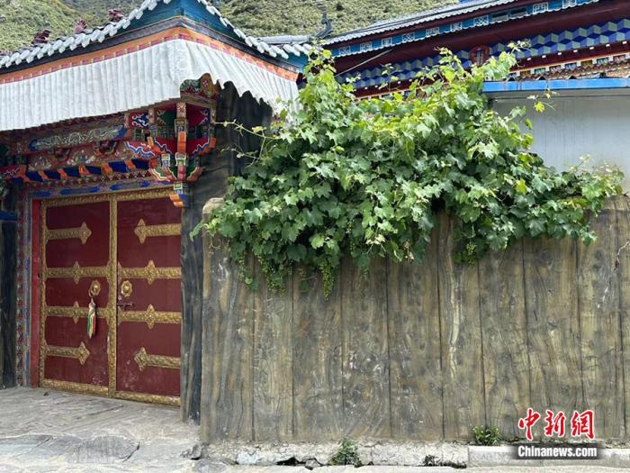 嘎拉村距林芝市城區(qū)僅12公里,沿著318國道驅(qū)車行至此,映入眼簾的就是干凈整潔的道路。雖沒有趕上桃花季,但7月的嘎拉村瓜果飄香,村里面隨處可見到結(jié)滿果實(shí)的櫻桃樹、李子樹、葡萄藤等。