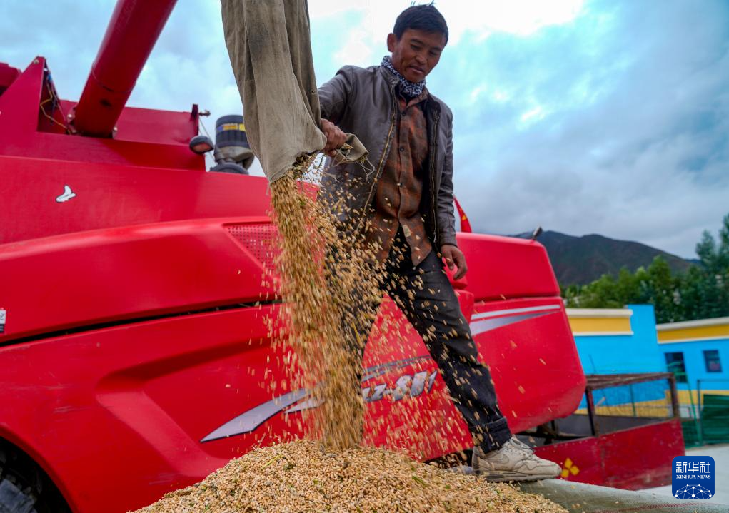 目前,西藏各地進入秋收時節(jié)。西藏山南市乃東區(qū)的農(nóng)民在抓緊收獲作物。