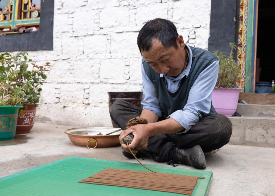 格桑次仁家里世代都會(huì)制作藏香,他和哥哥自小跟隨父親學(xué)習(xí)藏香制作技藝,哥哥次仁多吉如今也是這門技藝的國(guó)家級(jí)代表性傳承人?!斑@幾年,在政府的扶持下,家里購(gòu)置了藏香制作輔助機(jī)器,在保證藏香原料品質(zhì)不變的基礎(chǔ)上,得以實(shí)現(xiàn)量產(chǎn)。同時(shí),我們開拓線上銷售渠道,收入也隨之增加了?!备裆4稳收f(shuō),家里不僅翻新了房屋,還添置了小貨車、私家車,日子過(guò)得紅紅火火。