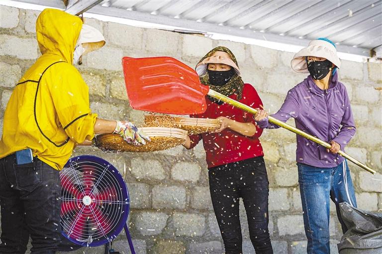 圖為村民們?cè)趽P(yáng)場(chǎng)。 記者 阿旺尼瑪 攝