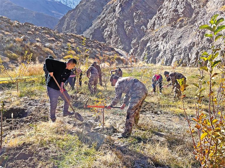 圖為阿里地區(qū)軍民共植“雙擁”樹。記者 溫凱 攝