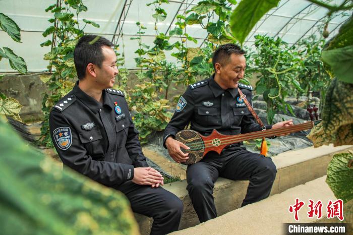 圖為西藏阿里門士邊境派出所民警在溫室大棚內(nèi)彈奏扎念琴。龍小鳳 攝