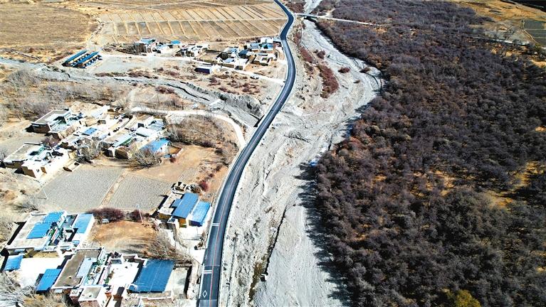 12月12日,山南市瓊結(jié)縣拉玉鄉(xiāng)鄉(xiāng)村旅游公路拓寬工程項(xiàng)目通車儀式在拉玉鄉(xiāng)白那村舉行。該公路長(zhǎng)度為10.18公里,路基寬度為7.5米,屬于三級(jí)公路,總投資3500萬(wàn)元。這條鄉(xiāng)村旅游公路的建成通車,不僅方便周邊村民出行,同時(shí)對(duì)開發(fā)當(dāng)?shù)剜l(xiāng)村旅游資源具有重要價(jià)值。 拉玉鄉(xiāng)鄉(xiāng)村旅游公路(無人機(jī)照片)。本報(bào)記者 白瑪澤旺 攝