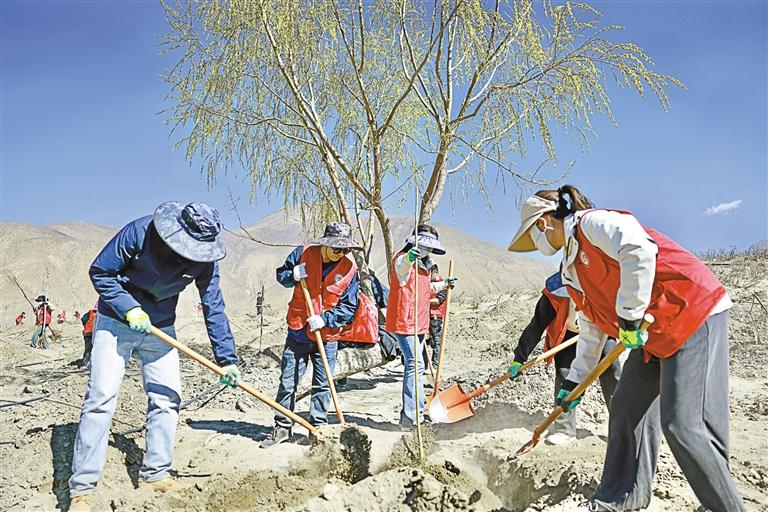 圖為桑日縣干部職工在雅江岸邊植樹。記者 劉楓 丹增平措 攝