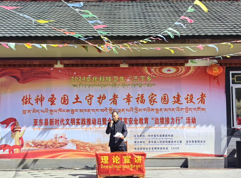 4月伊始,在“全民國家安全教育日”來臨之際,亞東縣文化科技衛(wèi)生“三下鄉(xiāng)”第三站來到了邊境村。此次活動由亞東縣委宣傳部、亞東縣國家安全人民防線建設(shè)領(lǐng)導(dǎo)小組辦公室、亞東縣委國安辦共同舉辦,以“做神圣國土守護者、幸福家園建設(shè)者”為主題,以文藝+宣講+服務(wù)的形式,開展了系列宣傳教育活動?;顒邮紫葘υ摯?024年第一季度邊境小康村“五星戶”進行了頒獎,通過表彰活動,進一步激發(fā)邊境群眾做神圣國土守護者、幸福家園建設(shè)者的決心和信心。