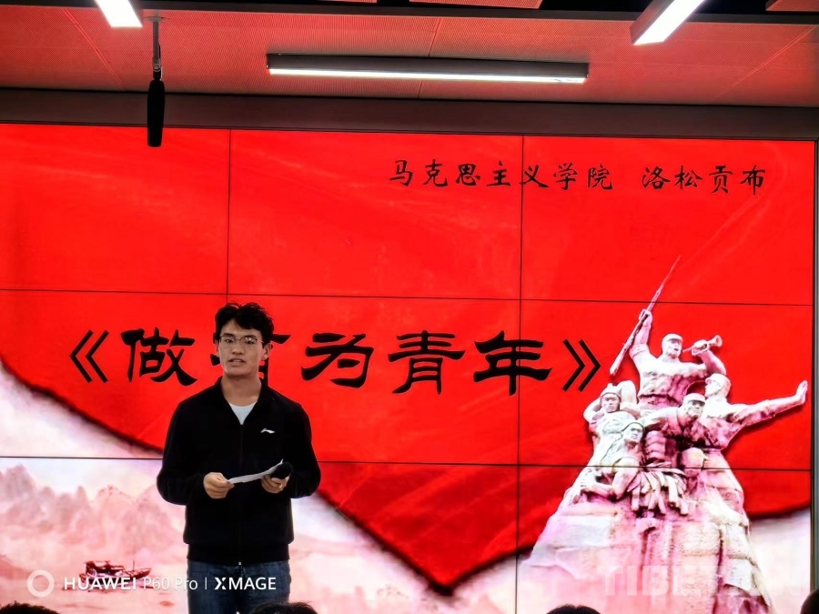 洛松貢布,出生于西藏自治區(qū)昌都市洛隆縣,現(xiàn)在是首都師范大學(xué)馬克思主義學(xué)院的學(xué)生。受到老成員的邀請(qǐng),洛松貢布在大二期間就成為“京城藏韻”公眾號(hào)的成員之一,從事活動(dòng)的組織和協(xié)調(diào)工作。相信對(duì)于很多在京求學(xué)工作的藏族年輕人來(lái)說(shuō),“京城藏韻”并不陌生,除了定期為西藏青年提供信息資訊以外,還成為了許多藏族學(xué)子在北京的“家”?!熬┏遣仨崱笔窃诰┎刈鍖W(xué)生們自發(fā)性的群眾組織,已經(jīng)舉辦過(guò)多屆神牛杯足球賽、巴扎杯籃球賽和羚羊杯鍋莊舞大賽。洛松貢布牽頭舉辦的“強(qiáng)國(guó)有我青春有為”的演講比賽是第一屆,未來(lái)還將繼續(xù)舉辦下去。通過(guò)豐富多彩的課外活動(dòng),藏族青年們?cè)谶@里共同成長(zhǎng)、共同進(jìn)步。