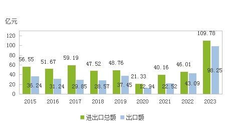 全年貨物貿(mào)易進(jìn)出口總額109.78億元,比上年增長(zhǎng)138.3%。其中,出口98.25億元,增長(zhǎng)127.7%;進(jìn)口11.53億元,增長(zhǎng)295.2%。一般貿(mào)易進(jìn)出口82.29億元,增長(zhǎng)166.5%。其中,出口72.23億元,增長(zhǎng)157.3%;進(jìn)口10.06億元,增長(zhǎng)258.4%。邊境小額貿(mào)易進(jìn)出口26.70億元,增長(zhǎng)78.6%。其中,出口25.88億元,增長(zhǎng)73.2%;進(jìn)口0.82億元,增長(zhǎng)98.7倍。