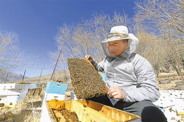夜伴蜂聲西藏蜜蜂文化主題生態(tài)園位于山南市乃東區(qū)結(jié)巴鄉(xiāng)結(jié)巴村,是山南市第一個(gè)自然科普研學(xué)基地。近年來,園區(qū)以養(yǎng)殖基地、體驗(yàn)基地、電商中心、生產(chǎn)工廠和科研基地五位一體模式,將蜜源植物觀光、蜜蜂養(yǎng)殖體驗(yàn)、蜜蜂文化宣傳、蜜蜂美食產(chǎn)業(yè)有機(jī)融合,促進(jìn)蜂產(chǎn)業(yè)與休閑觀光、鄉(xiāng)村旅游等深度融合,吸引更多當(dāng)?shù)剞r(nóng)民進(jìn)入養(yǎng)蜂行業(yè),實(shí)現(xiàn)增收致富。 圖為夜伴蜂聲西藏蜜蜂文化主題生態(tài)園的養(yǎng)蜂工人在換蜂箱。 本報(bào)記者 唐斌 攝