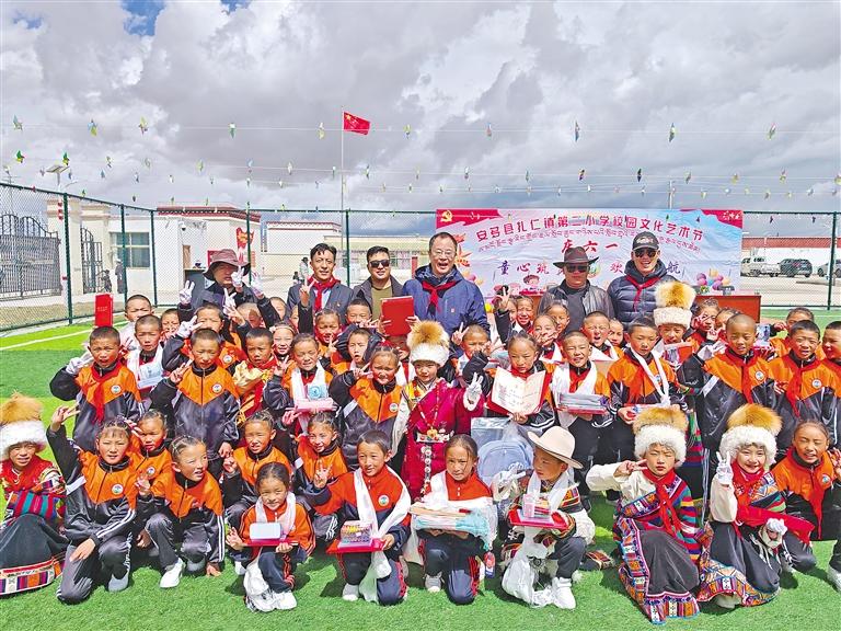 沈陽(yáng)市第十批援藏工作隊(duì)員與安多縣扎仁鎮(zhèn)小學(xué)師生一起慶祝六一兒童節(jié)。
