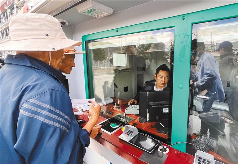 工作人員為老人辦理業(yè)務(wù)。記者 旦增藍澤 攝