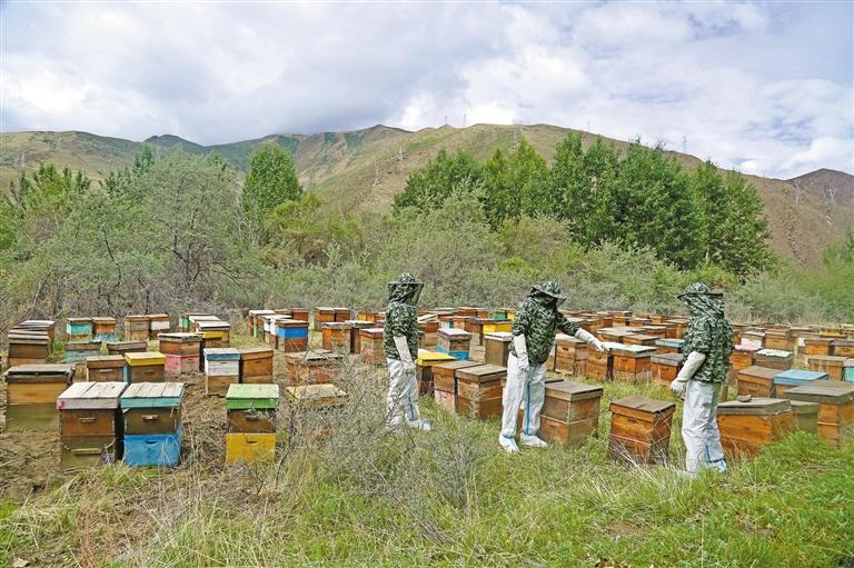 圖為養(yǎng)殖人員在養(yǎng)蜂基地作業(yè)。記者 裴聰 攝