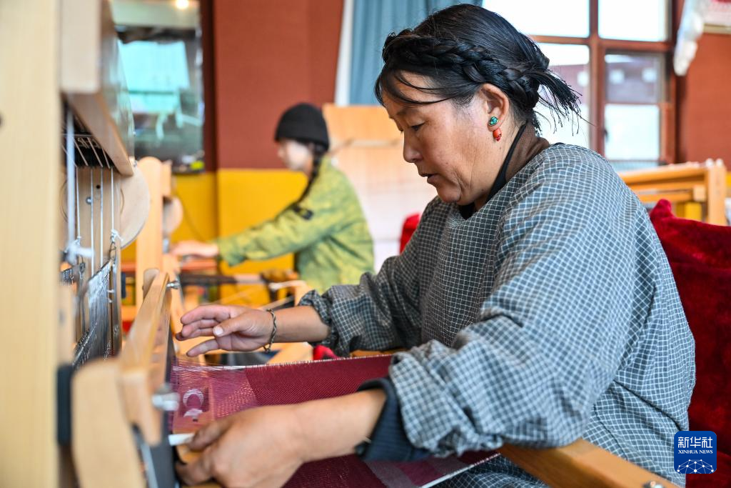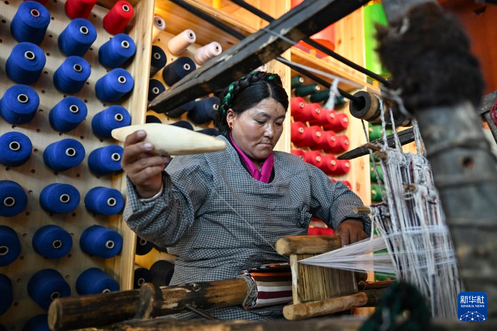 氆氌是藏族群眾用來制作藏式衣物的毛織品,其工藝迄今已有上千年歷史。在上海援藏幫扶下,這項傳統(tǒng)技藝如今已成為當(dāng)?shù)亍鞍⒓选保ú卣Z意為“大姐”)們的致富新途徑,煥發(fā)出新的生機(jī)。