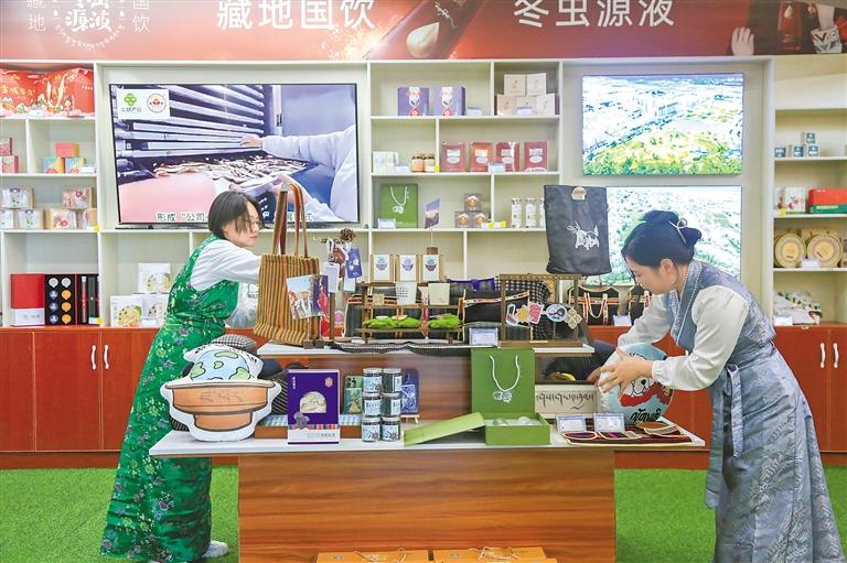巴宜區(qū)供銷合作社工作人員整理文創(chuàng)產(chǎn)品。 記者 謝筱純 王珊 攝