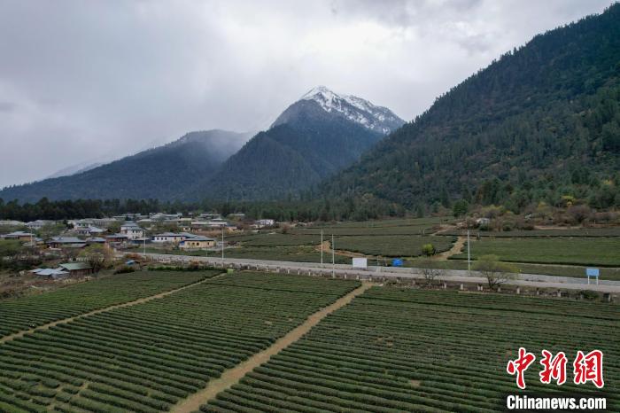 圖為12月13日,西藏林芝波密縣易貢雪山、茶田風(fēng)光。(無(wú)人機(jī)畫(huà)面)記者 江飛波 攝