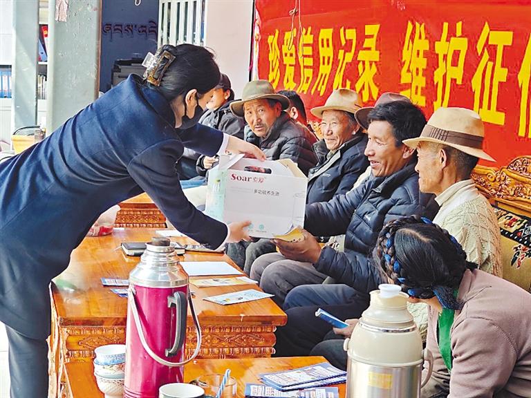 圖為農(nóng)行日喀則分行工作人員在基層開(kāi)展征信宣傳及貸前信息采集工作。記者 扎西頓珠 攝