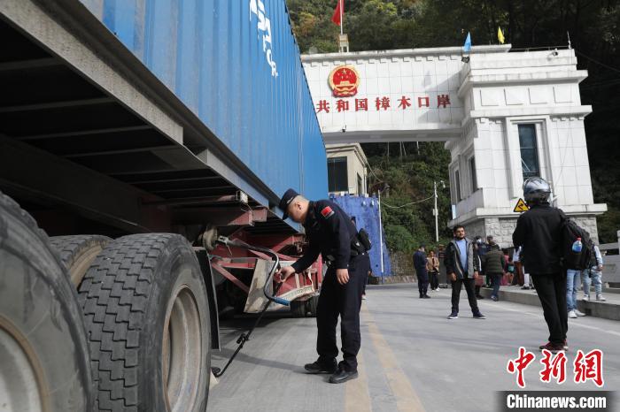 圖為尼泊爾貨車從吉隆口岸國(guó)門經(jīng)過。肖富貴 攝