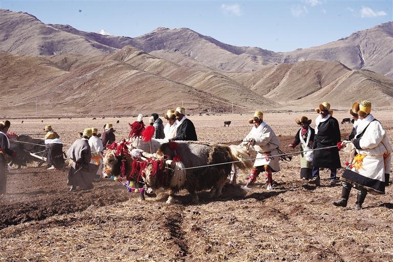 活動(dòng)中,村民們身著節(jié)日盛裝,手捧象征五谷豐登的“切瑪”,唱起祈愿歌,互敬青稞酒,共同祈愿新的一年豐收。隨著鐵犁翻開土地,婦女們將手中的種子撒下,寄托著對(duì)豐收的殷切期望。政府領(lǐng)導(dǎo)、企業(yè)代表和村民們齊聚一堂,共同見證了這一充滿希望的農(nóng)事活動(dòng),同時(shí)也迎來了推動(dòng)鄉(xiāng)村發(fā)展的重要時(shí)刻。