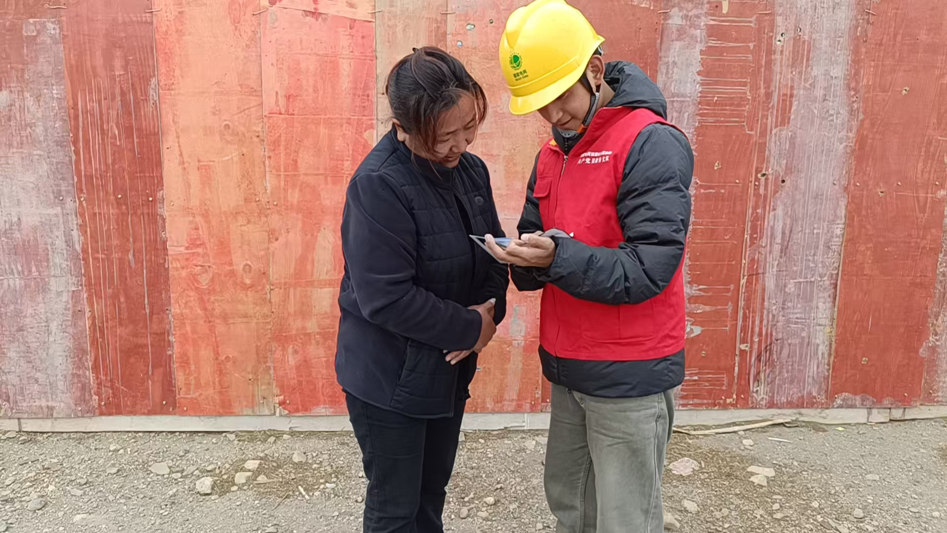 圖為國(guó)網(wǎng)嘉黎縣供電公司網(wǎng)格員為用戶講解網(wǎng)上國(guó)網(wǎng)app使用方法