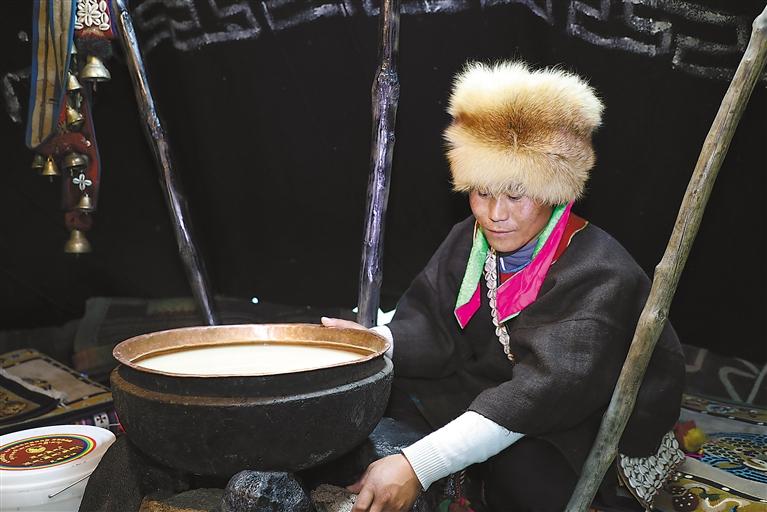 文化賦能同樣為產(chǎn)業(yè)注入靈魂。村集體打造的“艾·邱多江牧人生活體驗館”,將黑帳篷、牛皮筏、酥油茶桶等牧區(qū)生活器具轉(zhuǎn)化為文旅“IP”。游客可體驗擠牦牛奶、打酥油、跳鍋莊,品嘗現(xiàn)烤的藏香羊排?!叭ツ辏哟?00多名游客,帶動群眾增收5萬多元。”扎西卓瑪告訴記者。如今,牧業(yè)與文旅的融合,正讓瑪如村的“牧區(qū)故事”傳向更遠(yuǎn)方。