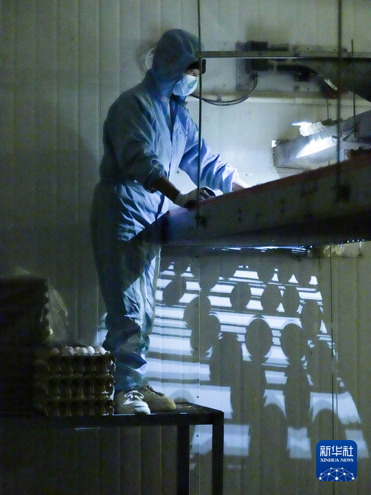 一棟棟銀白色雞舍整齊排列,讓曾經(jīng)的荒灘變了模樣。這些雞舍采用全封閉式養(yǎng)殖模式,智能環(huán)控系統(tǒng)可以實時調(diào)整雞舍內(nèi)的溫度、濕度和通風,雞蛋收集帶如銀色溪流般緩緩流動。