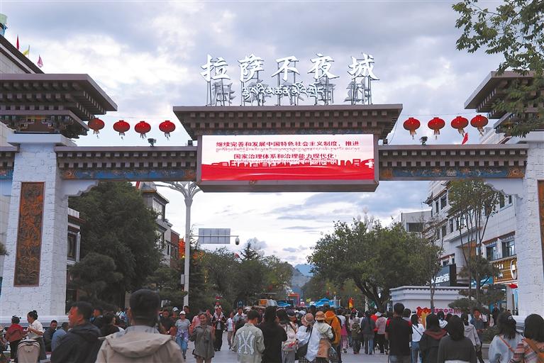 開街首日,藏式燈籠與LED光帶將整條街道裝點得宛如銀河落地,標(biāo)志著拉薩正式邁入“全域全時旅游”新時代。