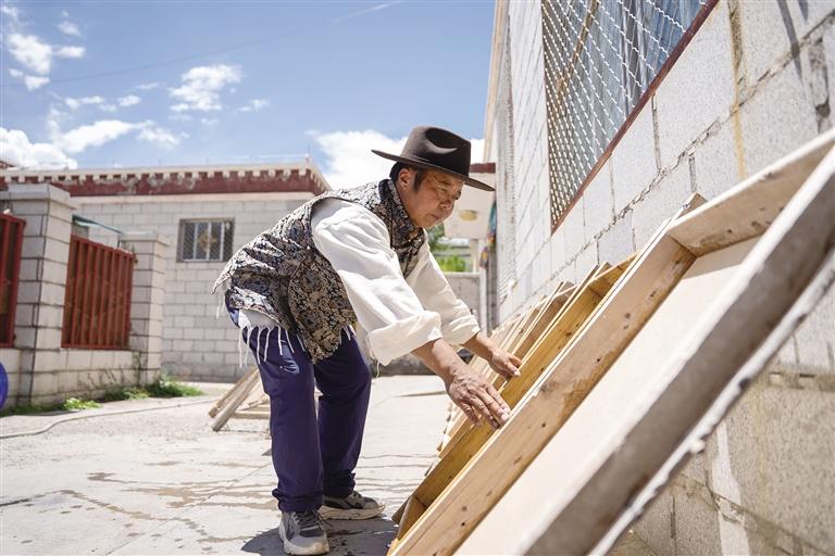 8月13日,記者來到尼木縣普松鄉(xiāng)曲水村的一個(gè)院落,58歲的斯曲正在窗邊埋頭雕刻,刻刀飛轉(zhuǎn)游走間,精致的花紋在木板上慢慢展現(xiàn),很快雕刻作品便初具雛形。作為普松雕刻第六代傳承人,斯曲自12歲起就在爺爺和爸爸的教導(dǎo)下開始學(xué)習(xí)這門手藝,如今的他早已成為普松雕刻自治區(qū)級(jí)非物質(zhì)文化遺產(chǎn)代表性傳承人。斯曲介紹,普松雕刻步驟煩瑣、工具講究,根據(jù)圖案復(fù)雜程度不同,耗時(shí)從6小時(shí)到3個(gè)月不等,十分考驗(yàn)雕刻者的耐心。
