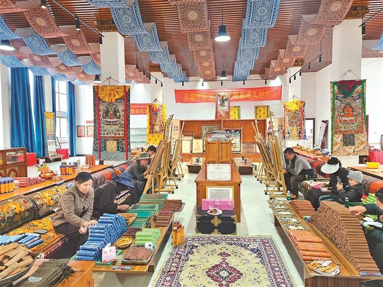 在政府持續(xù)的政策扶持、資源對(duì)接和市場(chǎng)推廣助力下,合作社發(fā)展態(tài)勢(shì)良好,銷售渠道變寬,有效激活了桑珠榮村的發(fā)展?jié)撃?。目前,合作社共有成員12人,其中6名是唐卡畫師,6名專職制作藏香。通過(guò)唐卡創(chuàng)作與藏香加工,合作社已實(shí)現(xiàn)盈利27萬(wàn)余元,不僅直接解決了12名村民的穩(wěn)定就業(yè)問(wèn)題,還為桑珠榮村贏得了“唐卡與藏香傳承第一村”的美譽(yù),成為當(dāng)?shù)匚幕x能鄉(xiāng)村振興的典范。