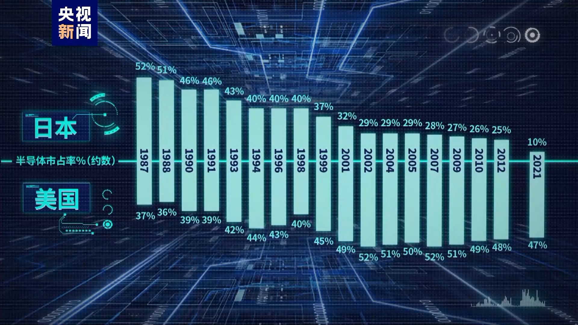 這時的日本,有著全球50%的半導體市場。其中最為矚目的企業(yè),是東芝,它研發(fā)出了全球第一臺筆記本電腦,連續(xù)七年市場占有率全球第一。