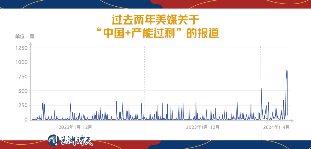 檢索美媒同時提及“中國”“產(chǎn)能過?!钡膱蟮?,從數(shù)量變化中,可以看出,所謂中國“產(chǎn)能過剩”的話題,從2022年就已經(jīng)開始。