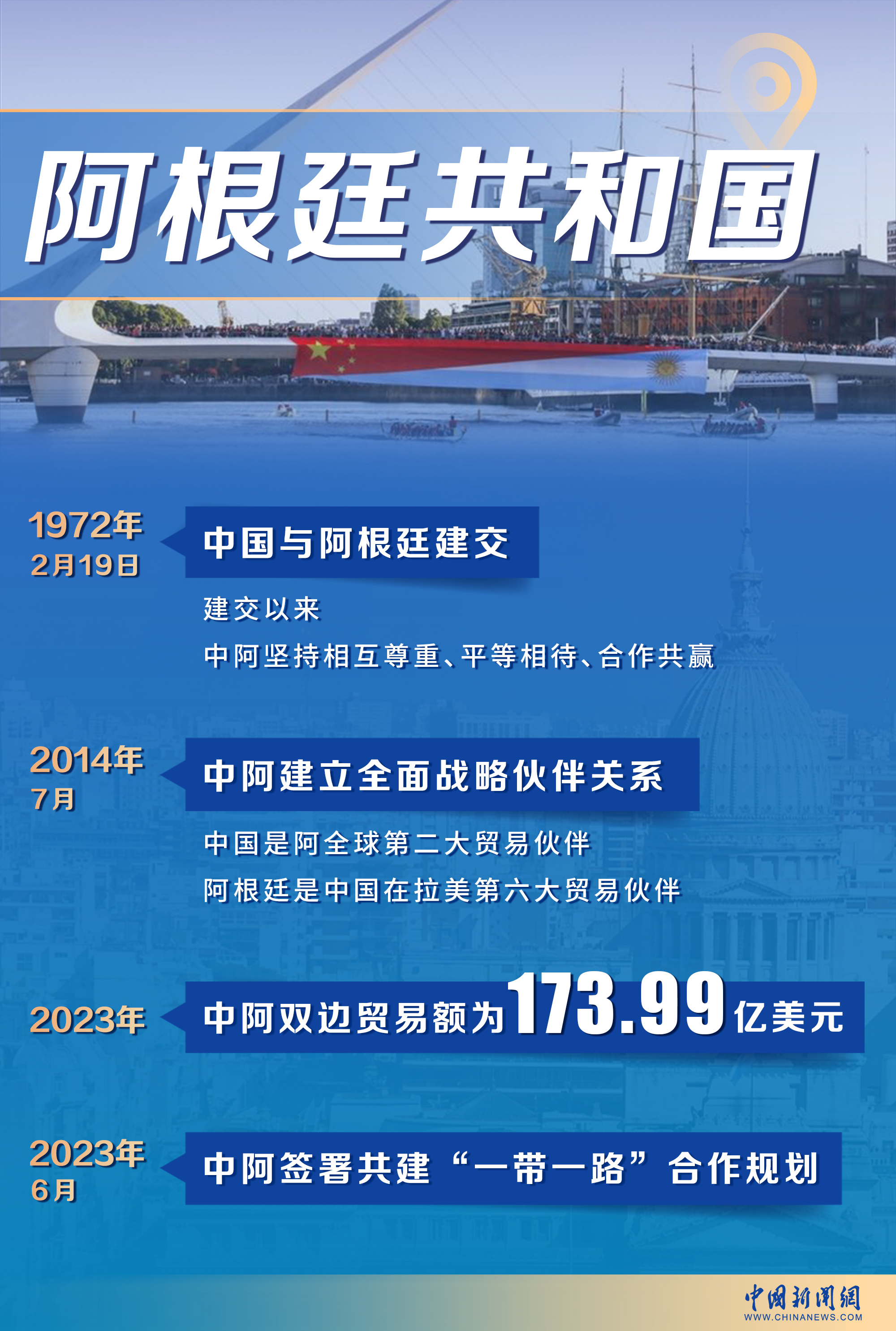 中國是阿根廷全球第二大貿易伙伴,而阿根廷也已成為中國在拉美的第六大貿易伙伴。2023年,雙邊貿易額達到173.99億美元。