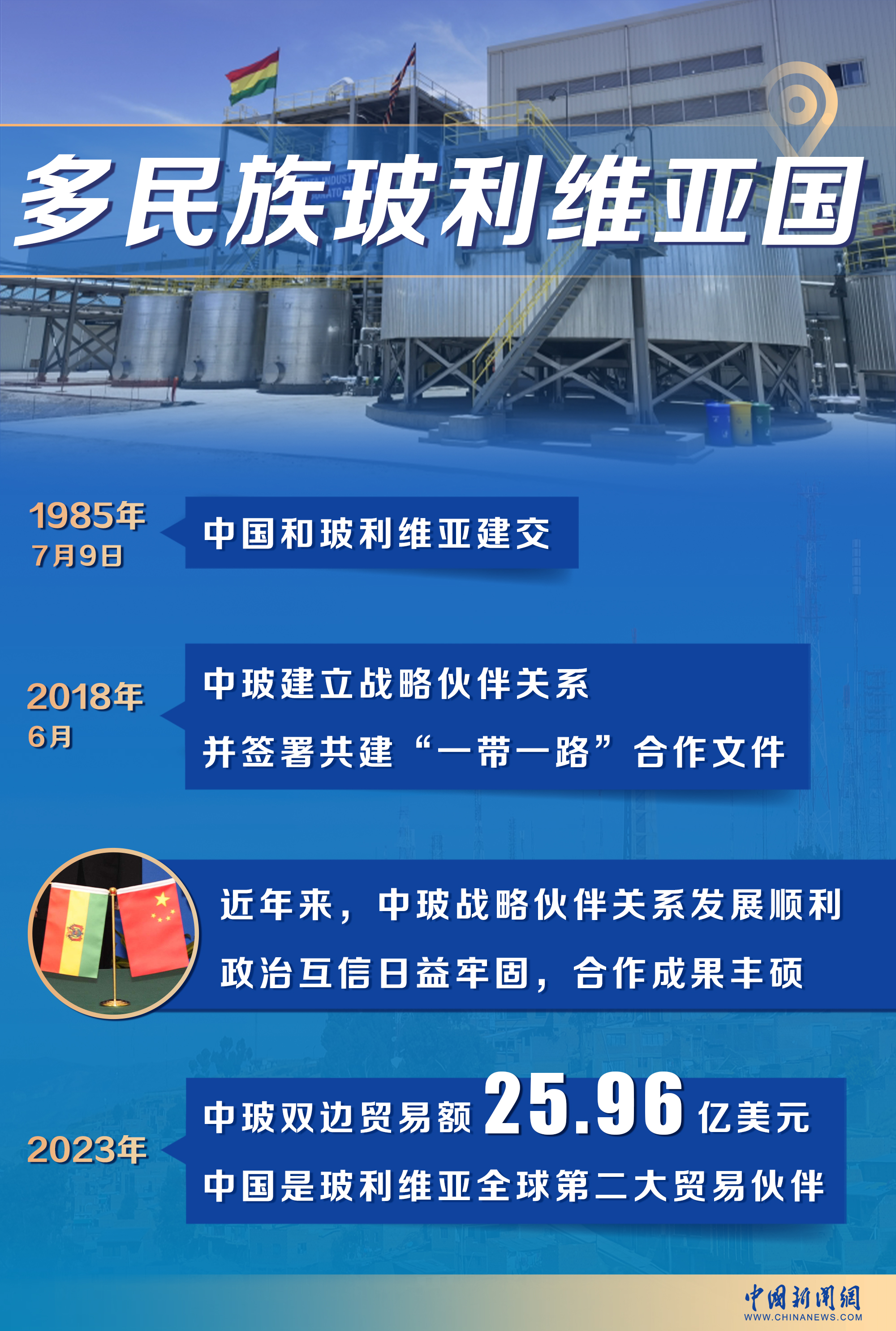 2023年,中玻雙邊貿易額達到25.96億美元,中國成為玻利維亞全球第二大貿易伙伴。