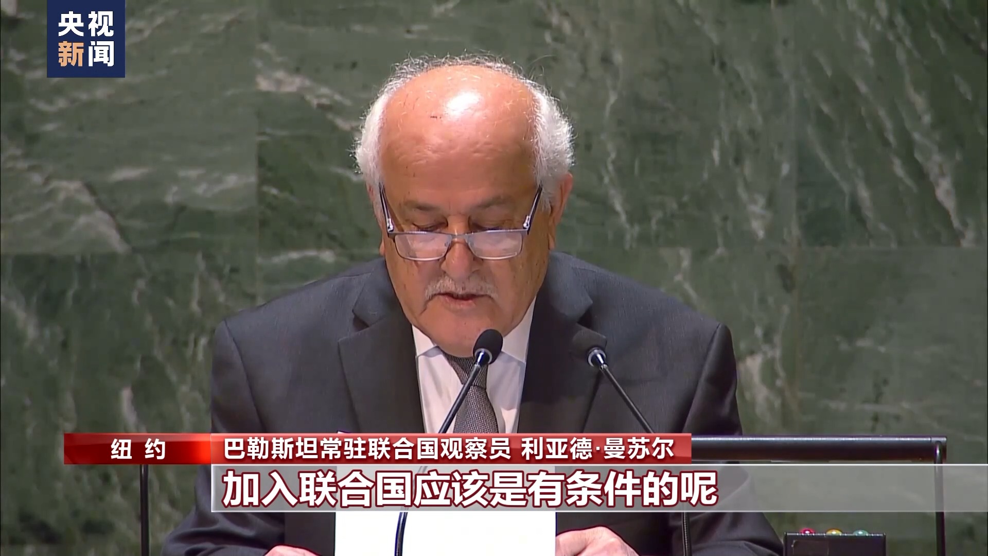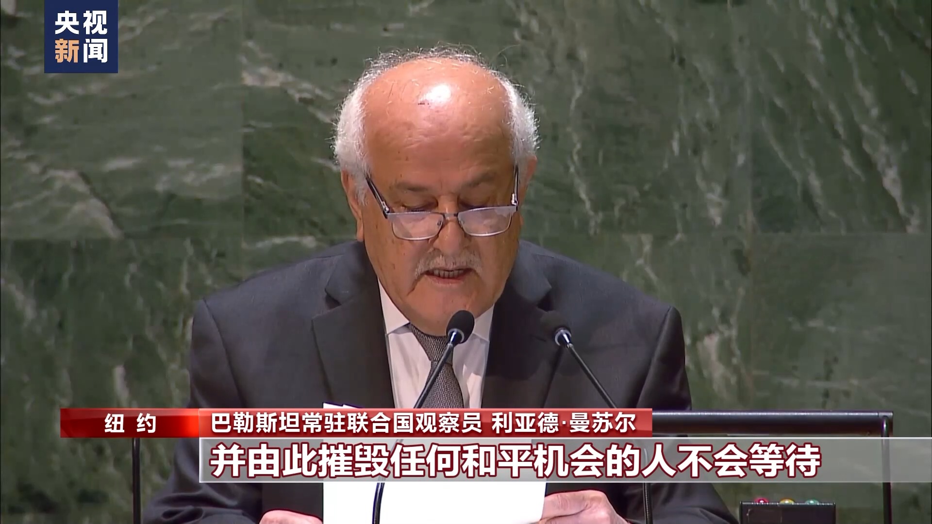 巴勒斯坦常駐聯(lián)合國(guó)觀察員 利亞德·曼蘇爾:那些想要摧毀巴勒斯坦國(guó),并由此摧毀任何和平機(jī)會(huì)的人不會(huì)等待。